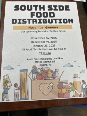 This winter, South Side Community Coalition is holding one free food distribution per month (November - January). All food distributions will be held at 12:00pm. FREE.